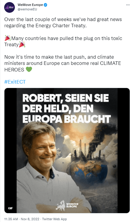 Zuerst haben wir die EU-Kommission darauf aufmerksam gemacht, dass dieser giftige Vertrag ein Relikt aus einer anderen Zeit ist. Ein Fossil aus einer Ära, in der der Klimawandel geleugnet wurde.